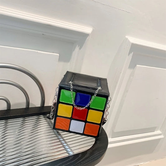 Women’s Geometric Cube Handbag | Colorful Square Box Shaped Clutch Bag | Minimalist Microfiber Synthetic Leather Evening Purse & Top-Handle Bag