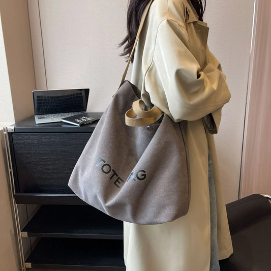 Milk Cotton Large Capacity Commuter Tote | Ultra-Soft Versatile Work & Student Handbag | High-Functionality Shopping Bag with Computer Interlayer & Multi-Pocket Interior