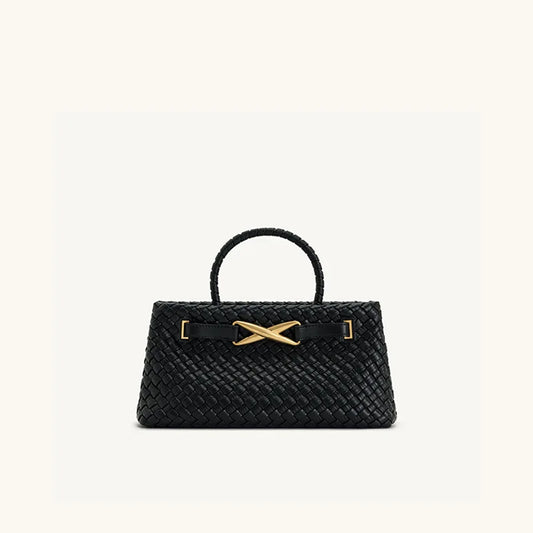 New Woven Designer Handbag | High-End Versatile Top-Handle Bag | Premium PU Leather Horizontal Square Purse & Crossbody (Unisex)