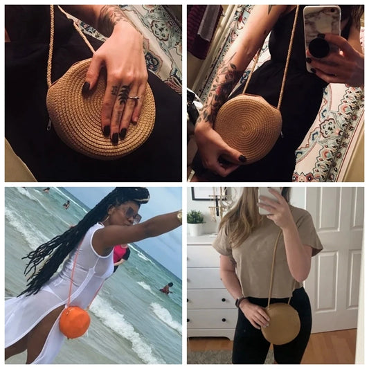 Round Straw Bag | Women's Woven Beach Crossbody Bag & Handmade Knitted Small Handbag