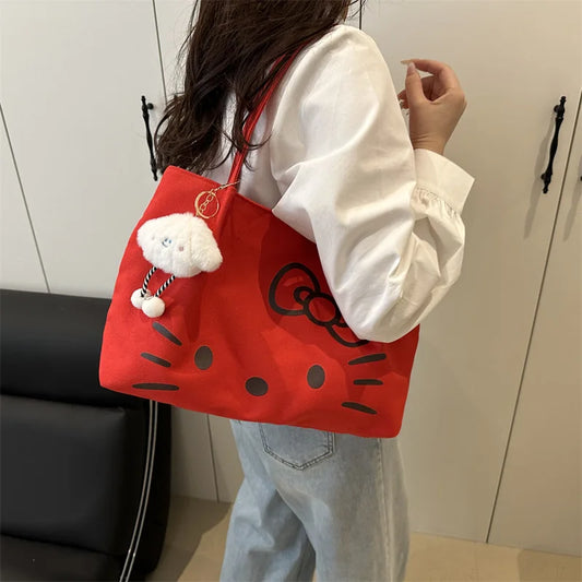 Hello Kitty Canvas Tote Bag Women Large Cute Cartoon Shoulder Bag | Fashion Female Versatile Commuting Handbag No Pendant