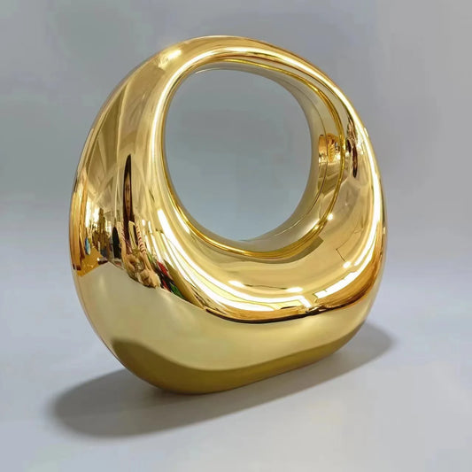 Hollow Hand-Made Metal Sense Gold Beads Woven Handbag | Half-Round String Beads Pearl Bag