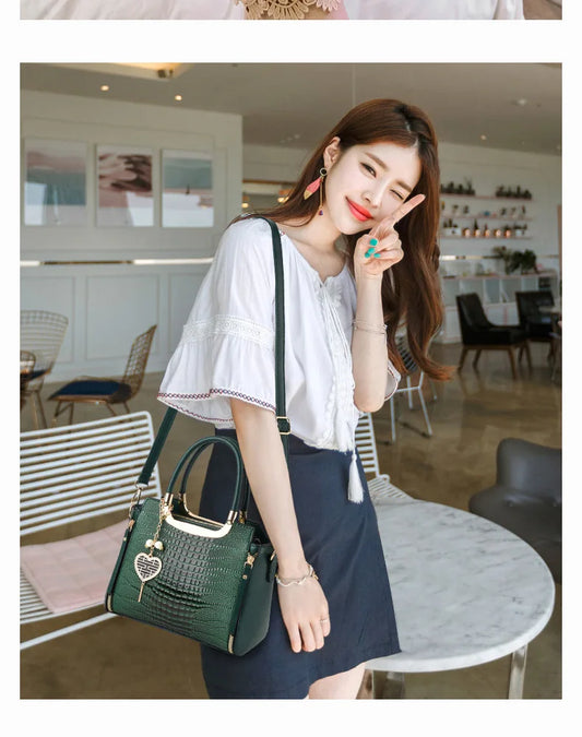 Bag Women New Fashion Crocodile Pattern Handbag | Large Capacity Casual Shoulder Messenger Bag (Purses & Handbags)
