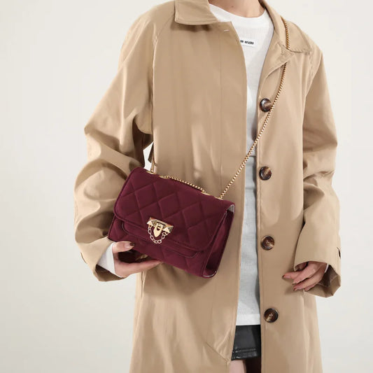Burgundy Vintage Flap Bag | Suede Fabric Shoulder & Crossbody Bag