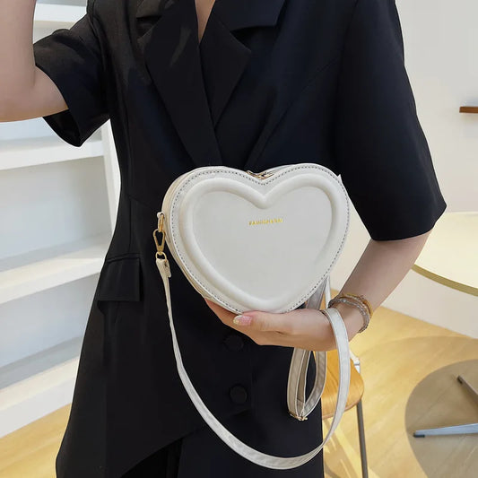 Heart Shaped PU Leather Sling Bag | Candy Color Zipper Crossbody