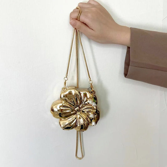 Rose Gold Acrylic Minaudiere with Lily of the Valley Charm | PVC Magnetic Messenger Bag