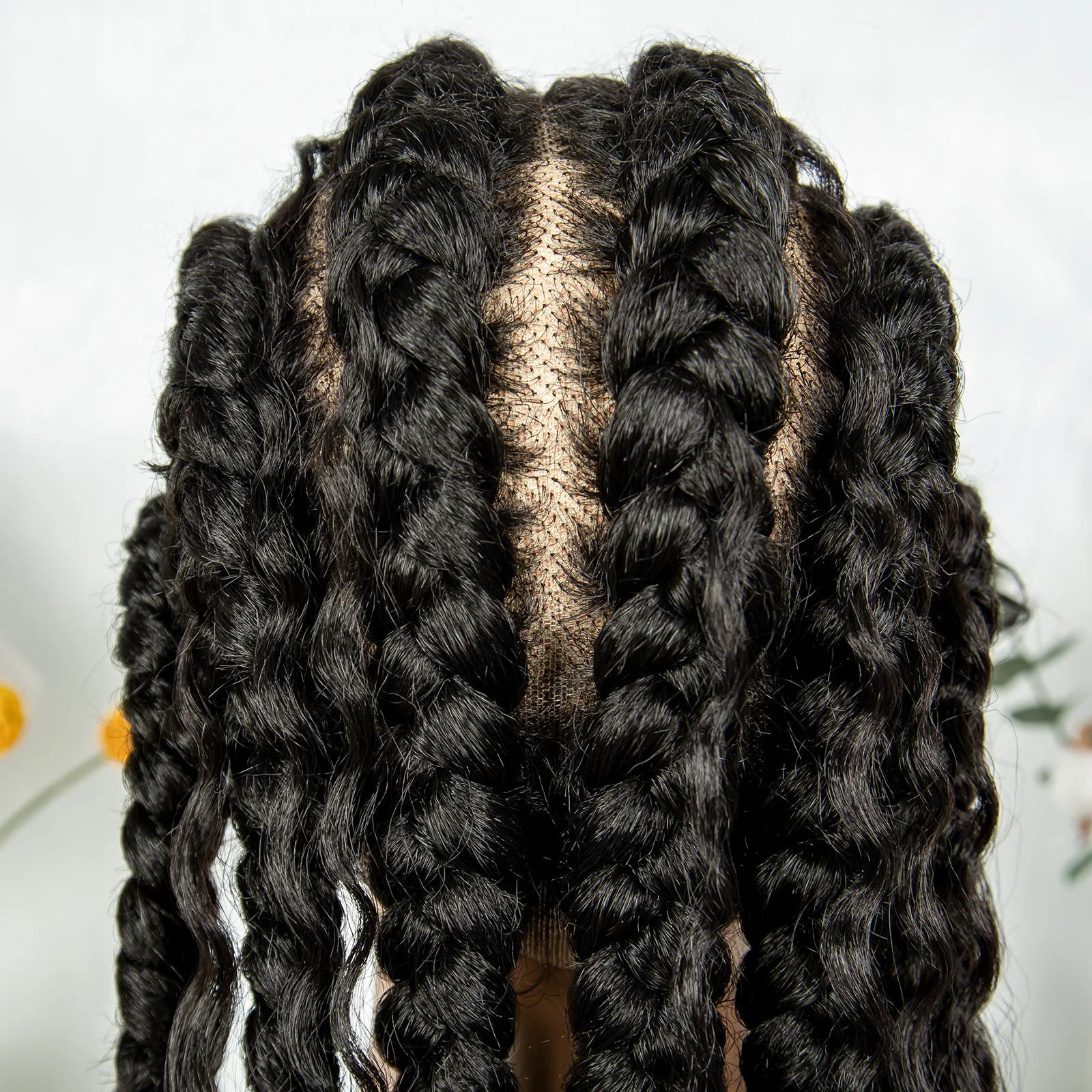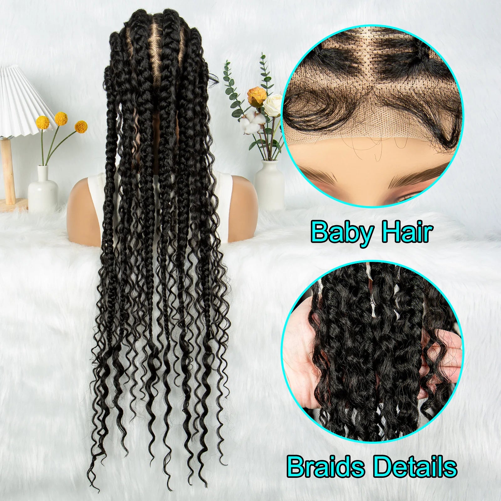 Cornrow Braided Wigs Synthetic Transparent Full Lace Wig With Baby Hair Braiding Wig Boho Cornrow Wig Curly End For Black Women