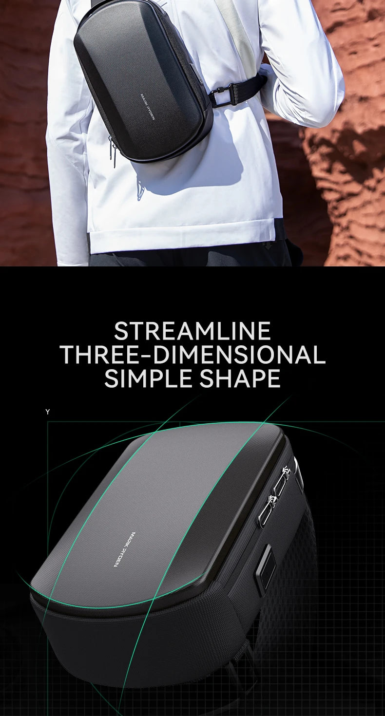 Crafted from a hard PU leather with a durable nylon lining, this bag is both sturdy and built to last. It features a secure zipper closure and a simple solid pattern, giving it a clean and modern look. The unique shell shape and hard-shell construction make it an ideal accessory for any occasion, blending a casual and trendy style with a practical design for both men and women. The added USB port allows you to conveniently charge your devices on the go.