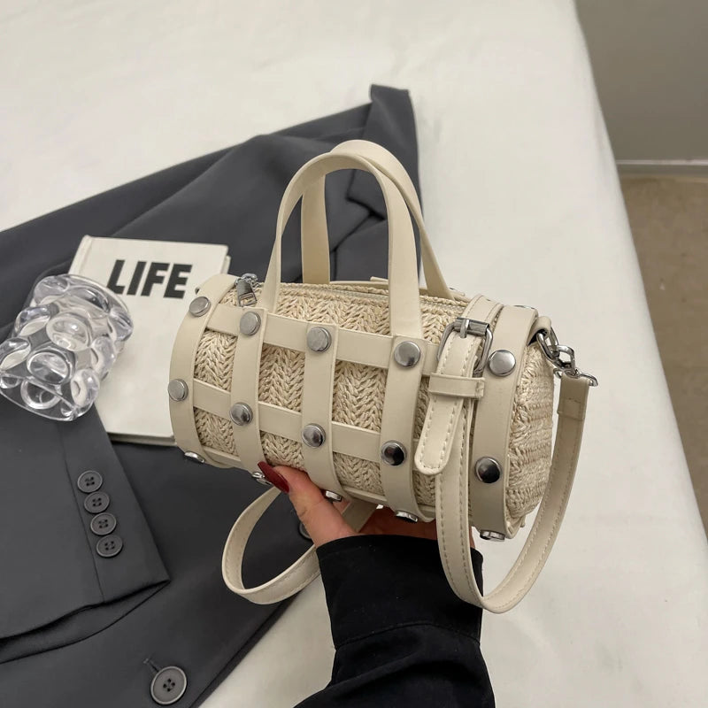 New Fashion Summer Cute Handbags | Light Feminine Straw Bags & Lady Design Purses with Rivet for Women