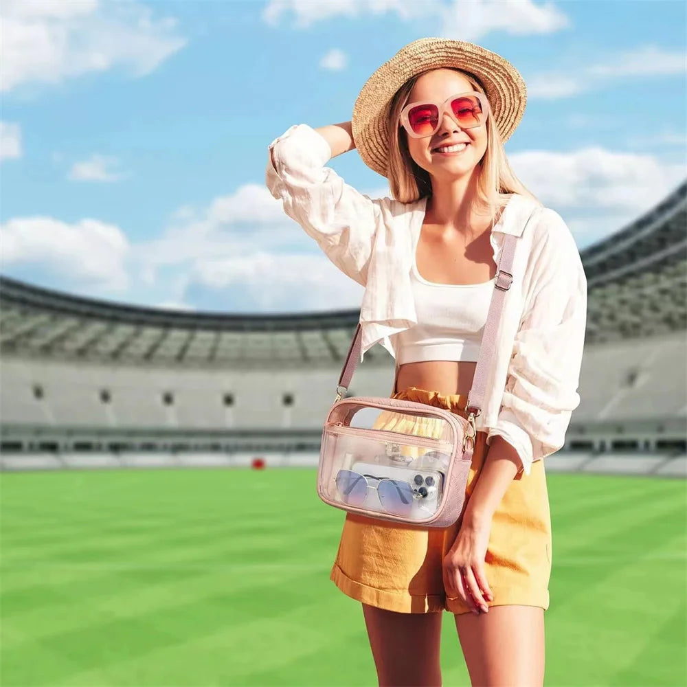 Discover playful utility with our Transparent PVC Crossbody Bag! This ladies' jelly square shoulder messenger bag is a versatile waterproof cosmetic bag, perfect as a female phone purse for travel.