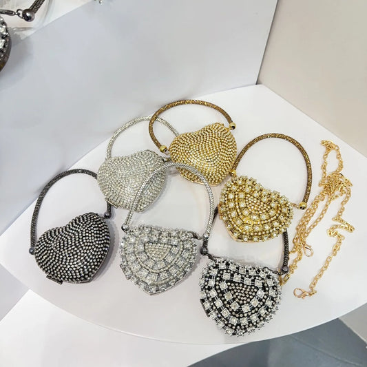 Luxury Mini Heart-Shape Crystal Clutch | Hard Diamond Inlay Evening Party Handbag