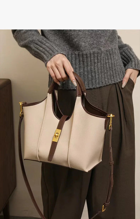 Fashionable Casual Lock Buckle Handbag Women's Bucket Bag | Trendy Single Shoulder High-End Crossbody Bag Soft PU Leather