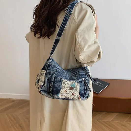 Retro Denim Crossbody Bag / Casual Tote