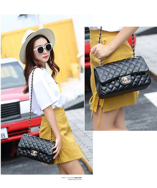 Trendy Brand Women’s Chain Bag | Sheepskin-Texture PU Leather Diamond Grid Crossbody & Shoulder Clutch
